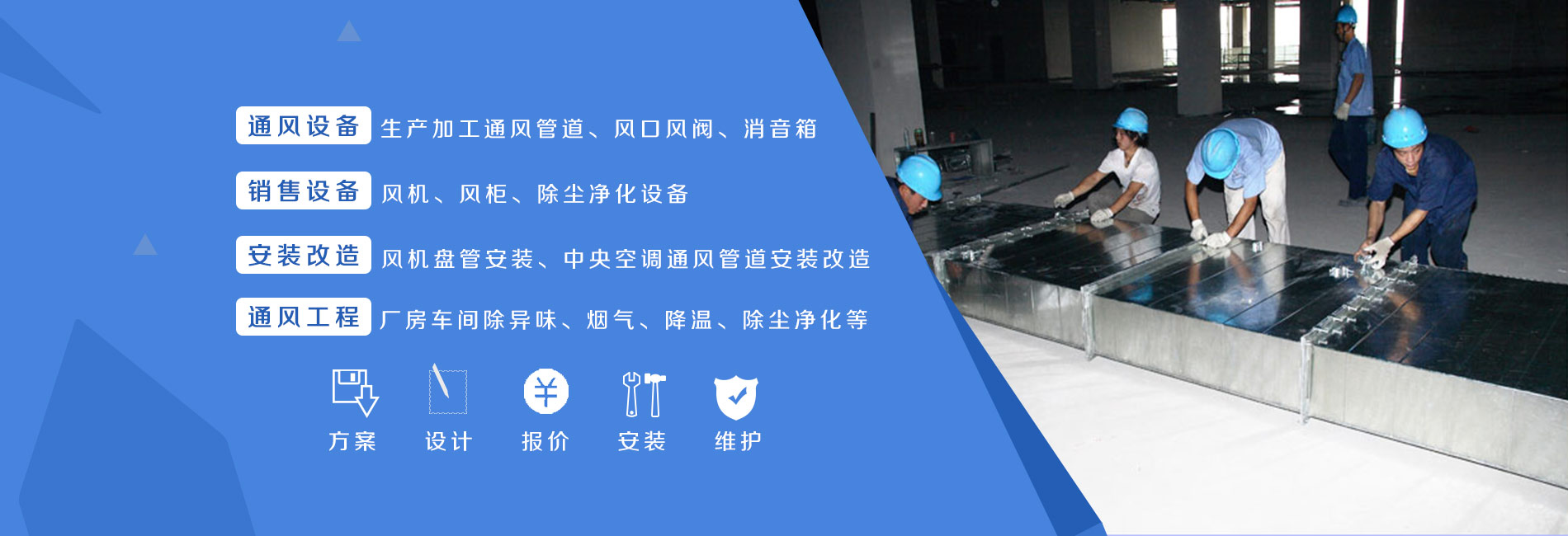 主營(yíng)產(chǎn)品:中央空調(diào)安裝,消防通風(fēng)安裝,排油煙管道安裝,螺旋風(fēng)管安裝